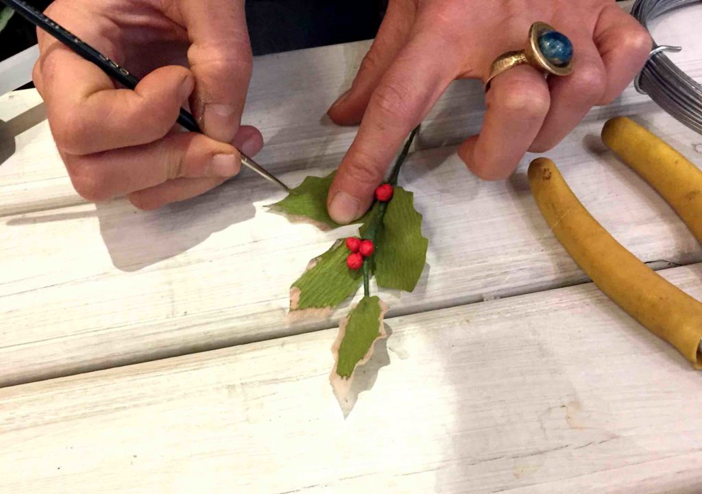La lavorazione dell’agrifoglio e l’inserimento di foglie e palline