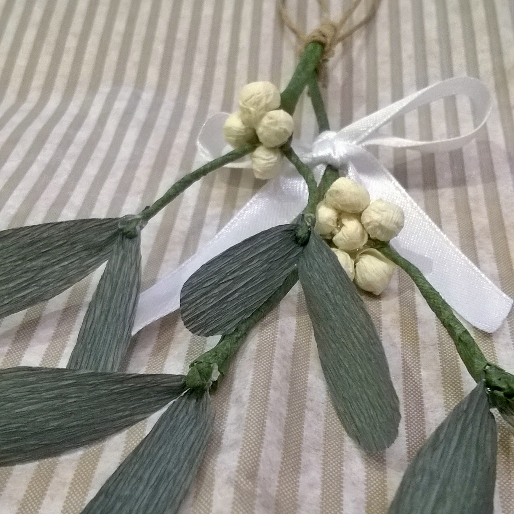 addobbi natalizi in carta crespa: il rametto di vischio completato