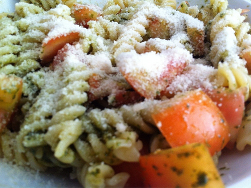 Un primo piatto di Chiara Chiaramonte non troppo impegnativo che ci fa fare il pieno di energie senza appesantirci troppo In estate cucinare un primo che non sia troppo impegnativo spesso è difficile. Chiara Chiaramonte prova questa combinazione che ci aiuta a restare pieni di energie senza rinunciare ad un gusto incisivo ma senza appesantirci.Ingredienti (per 2 persone. 150 g di pasta (io ho scelto i fusilli perché si maneggiano bene e trattengono bene il condimento). 1 vasetto di pesto