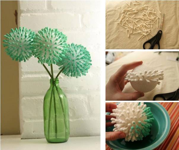 La vostra casa è tutto per voi, tanto che amate le decorazioni e i fiori? Benissimo perché con il riciclo dei cotton fioc si può fare molto, anche arricchire un vaso con la creazione di fiori finti. Prendete una palla in polistirolo e con l’aiuto di un paio di forbici tagliate le teste dei tamponi, quindi infilateli dentro la palla uno accanto all’altro. Imbeveteli in una ciotola di acqua e colore acrilico a vostro piacere e una volta asciutto il fiore, create un gambo con una cannuccia, quindi incollatela in un foro al centro. Fatene tre o quattro e posizionateli all’interno del vaso. Vedrete che tocco in più alla vostra casa!