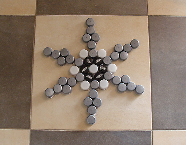 DECORARE UNA MATTONELLA CON I TAPPI DI PLASTICA