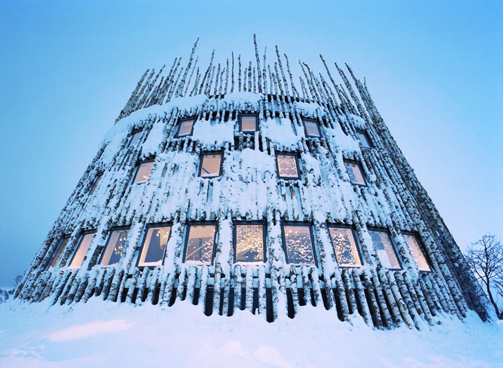 Si chiama Tusen e si trova in Svezia il ristorante creato grazie ad una palizzata di betulle locali. Tutto a basso impatto ambientale ospita sciatori e amanti del trekking