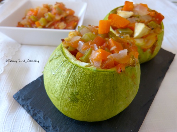 RICETTE DI CUCINA VEGETARIANA, ZUCCHINE TONDE RIPIENE DI CECI E MANDORLE TOSTATE